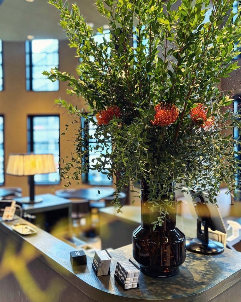 アートに彩られたおしゃれなインテリアの店内でごゆっくりお花をご覧下さい。