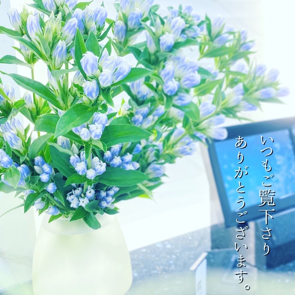 賑わあのある上質な華やかさのある受付装花と、お参りスペースの爽やかなリンドウの水色のコントラストが素敵です💓✨