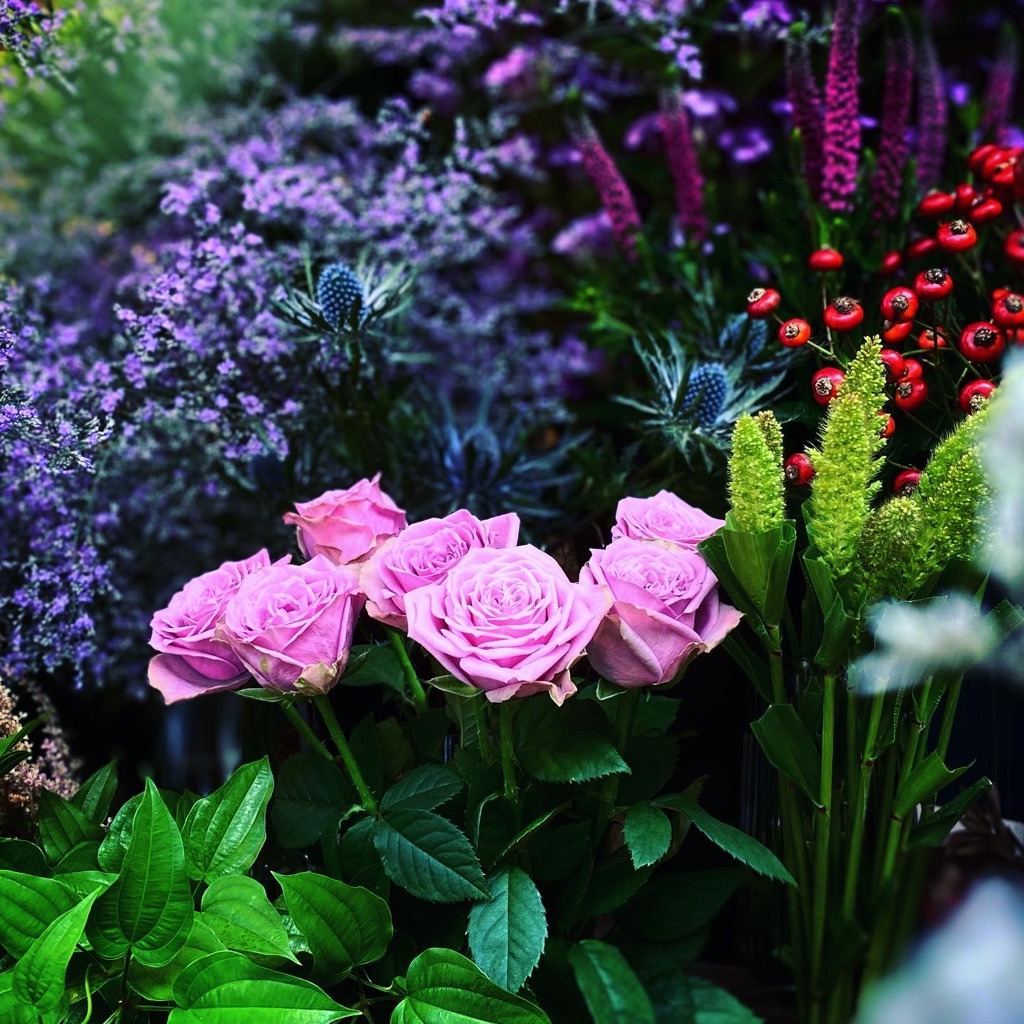 バラのブルーミルフィーユやリンドウなどなど見ていても癒される色ですね✨